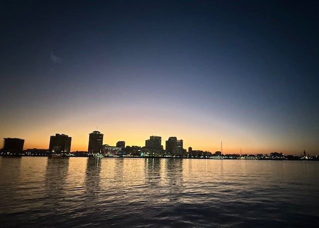 That is Hilton Riverside on the left and The Four Seasons straight ahead. Caesars Casino’s new hotel is just to the right of The Four Seasons. The tall building in the distance is the tallest building in the state of Louisiana. It used to be known as One Shell Square. Now it’s the Hancock Whitney Center.